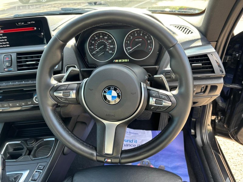Mot till:08/10/2026, FULL BMW SERVICE HISTORY, 2 former owners from new, a really clean car, led white lights, cruise control , stop start air-conditioning automatic headlights front and rear fog light, multimedia connectivity aux USB Bluetooth, parking sensors, This 2015 BMW 2 Series M235i presents a compelling proposition with its remarkably low mileage coupled with a clear vehicle history check. Under the bonnet, a potent 3.0 litre petrol engine powers this Euro 6 compliant model, offering an impressive 0-62mph acceleration time of 4.8 seconds. This particular example benefits from the desirable Media Package BMW haProfessional, automatically dimming folding door mirrors, and comprehensive Park Distance Control for both front and rear, including parking assistance sensors. Comfort is further enhanced by heated front seats, ensuring a pleasant driving experience in all conditions. Beyond its strong performance figures, this BMW 2 Series M235i stands out with its excellent fuel economy of 37 mpg, a notable achievement for an engine of this calibre. Its position within a low insurance group also makes it an attractive and cost effective choice for many drivers. These highlights collectively demonstrate how this vehicle offers a superior blend of performance, efficiency, and affordability when compared to other similar models on the market. stock code:143016, 110gbp doc fees applies, low finance rates available on our newer cars in house.