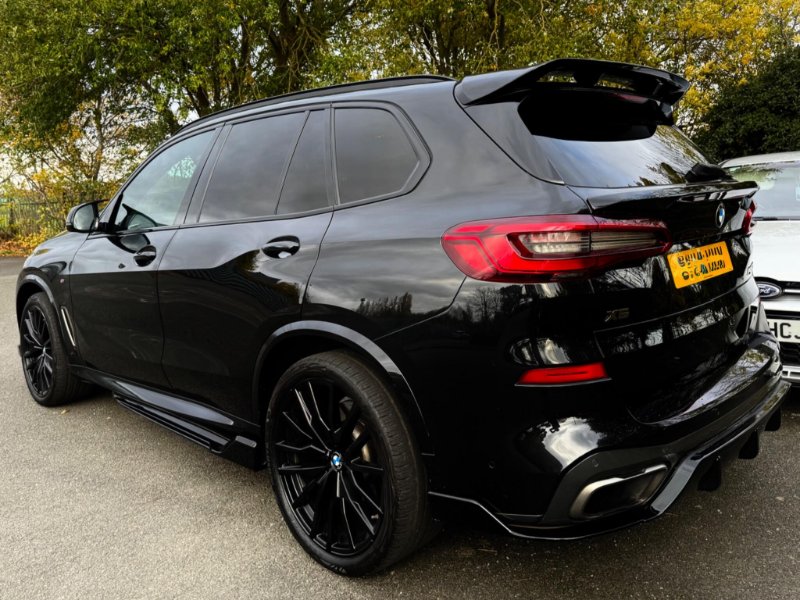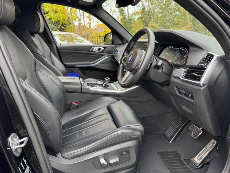 Reg no GX19HVY, Mot till:05/03/2026, low road tax of £195 for the year, 1 Former Owner from New, full BMW SERVICE HISTORY, Alloys 22 inch alloys, TECHNOLOGY PACK, BLUE CALIPERS, SUN PROTECTION GLAZING, HEATED SEATS | metallic sapphire Black with Black Niro Leather Interior, This car benefits from the following features: 22-inch Alloys, M Sports Exhaust System, M Sport brake, Sun protection glazing, virtual cockpit, Auto Dip Exterior Mirrors, LED fog lights, factory M Aerodynamics package. Theinterior features of this car are: Electric adjustable seats with memory, Sports seat, Heated Driver/Passenger Seats, M leather steering wheel, Anthracite Black Headlining. The technology and systems that this car has are as follows: Parking assistance system Plus, DAB Tuner, Harman/Kardon surround sound system, Teleservices, Telephony with Wireless Charging, BMW Gesture Control, WLAN Hotspot, Active pedestrian protection. The BMW X5 will provide all the space a family is likely to need and more. It’s driving a sports car in a 4x4, decent on fuel and ULez compliant, BMW X5 drivers love the mix of performance, relative economy, comfort and space, plus great build quality, Black Full leather interior, Four wheel-drive, upgraded body kit, This is a BMW X5 M50d, registered in 2019. It features a 3.0L diesel engine and a four-wheel drive drivetrain. The vehicle has very low mileage and a full dealership service history, along with a clear vehicle history check. It also boasts several features, including Driving Assistant Professional, BMW Individual Extended Merino Leather in Black-Black, Integral Active Steering, Adaptive M Suspension Professional, and acoustic glazing. The large boot space makes this car more practical than similar vehicles, offering ample room for luggage, shopping, or equipment, stock code:390490, 200gbp doc fees applies, low finance rates available on our cars in house from 9.4%, Pcp, Lease, Ballon, all available