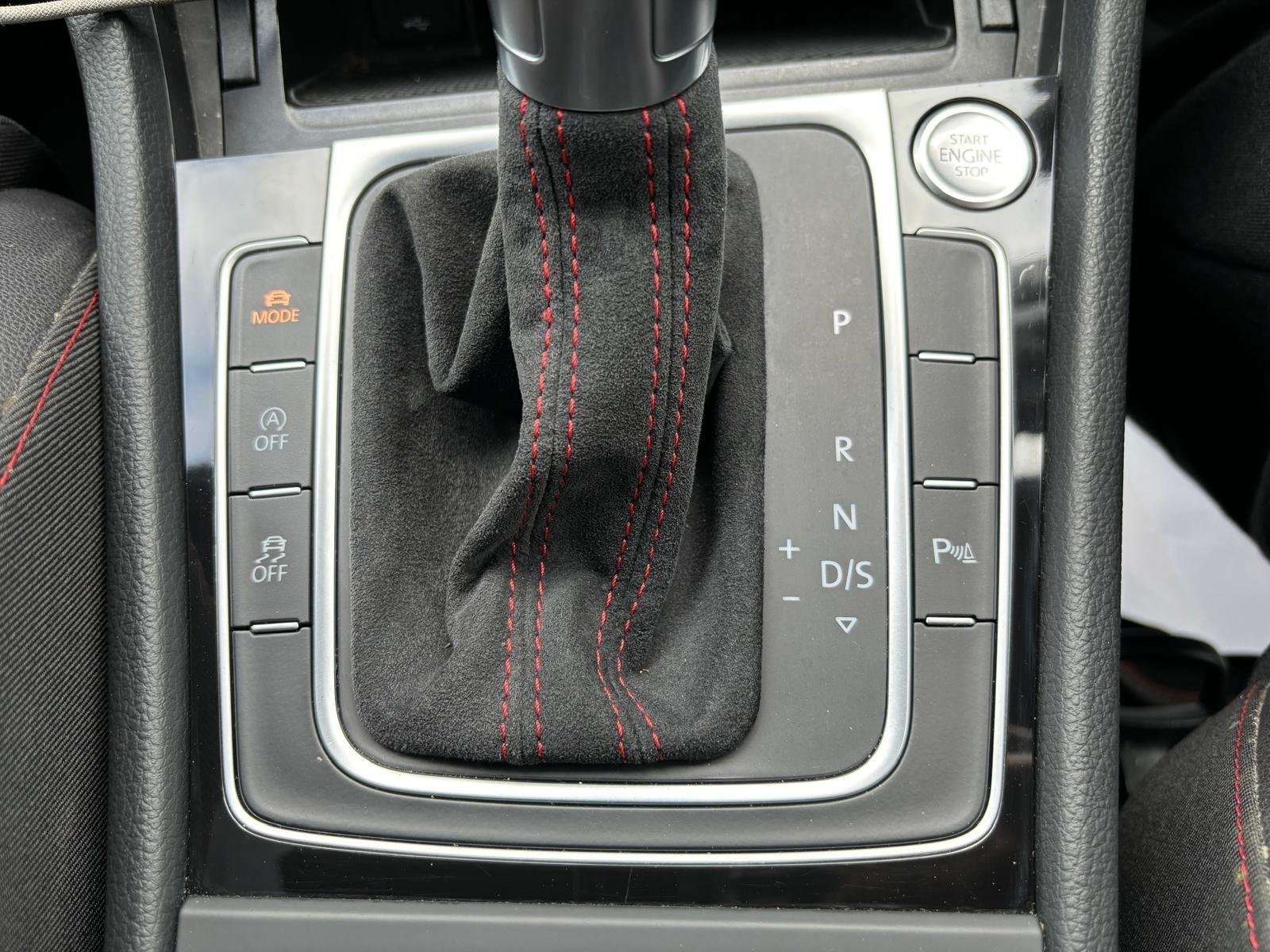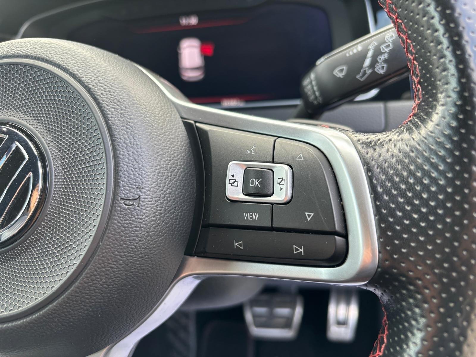 - Red Stitching with Red 12 o Clock Marker on Leather Trimmer Three-Spoke Multifunction Steering Wheel with GTI Logo